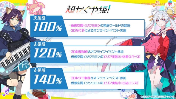 すでにストレッチゴールもクリアしているため、3Dかぐやに加え、3D彩葉、3Dヤチヨも制作する見通し。ツクヨミには休憩スペースや出店エリアも実装するとみられる。