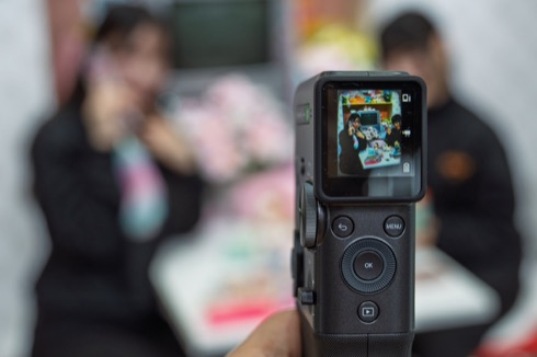 小さな縦型のモニターを見ながら、レトロな写真を撮れる(動画も撮れる)。