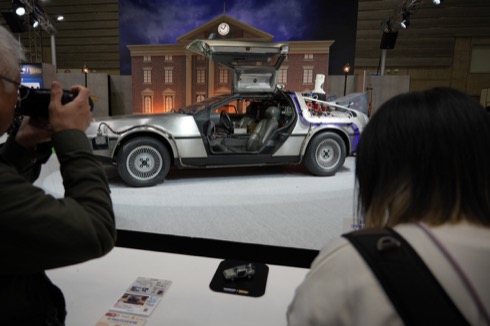 ブースは映画「バック・トゥ・ザ・フューチャー」とのコラボで、タイムマシンのデロリアンを被写体にレンズを試せる。