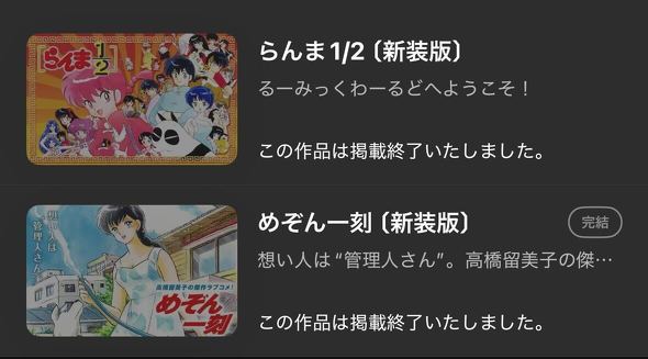 小学館の漫画配信サービス「マンガワン」で、3月1日までに「葬送のフリーレン」「めぞん一刻(新装版)」「らんま1/2(新装版)」といった作品が読めない状態になったことが分かった。いずれも「この作品は掲載終了いたしました」と表示され、スマートフォンアプリからもWebサービスからも閲覧できない状態だ。