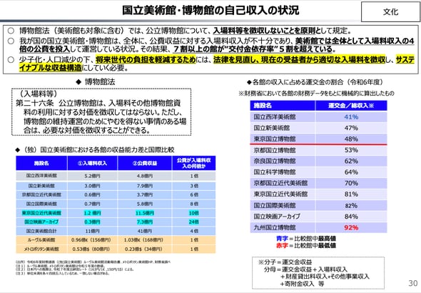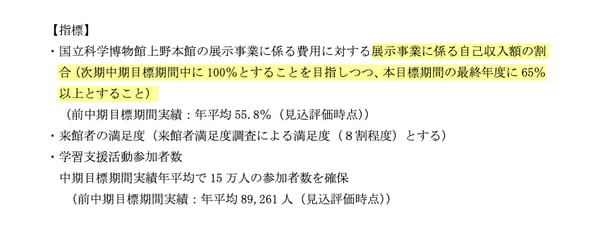 文化庁:割合は初です。国立の美術館や博物館の業務を充実させるため、(国からの交付金だけでなく)自己収入も確保する。それを着実に実施するための目標です。