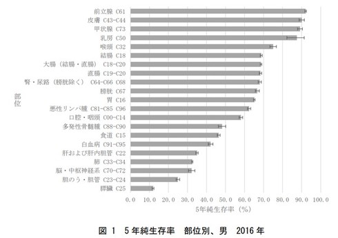 厚生労働省は、2016年にがんと診断された患者の経過を追跡した「全国がん登録 5年生存率報告」を公表した。この調査は「がん登録等の推進に関する法律」に基づき、国内全ての病院と指定診療所から収集された罹患、治療、予後のデータを分析したものだ。