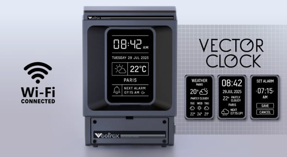 ゲームをプレイしていない時でも、Vectrex Miniはデスクの上で存在感を放ちます。Wi-Fiに接続すれば、時刻や天気などを表示する「多機能クロックモード」として機能。レトロフューチャーなデザインは、インテリアとしても活躍してくれそうです。