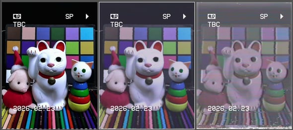 度合をどんどん上げていくと、画面下にノイズが出たり、ディテールが粗くなり、「何度もダビングして劣化したビデオテープ」っぽい写りになっていくのが面白い。