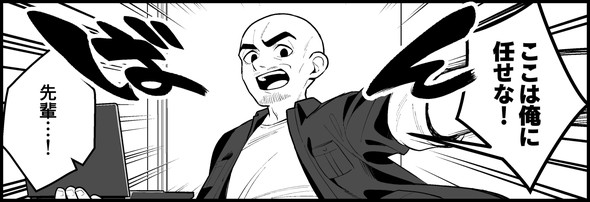 解決できないトラブルに悩むヤマダ。そこに頼れるベテラン(オノ)が駆けつけます。オノの背中を見て、ヤマダがつぶやいた一言は……。