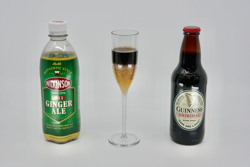 開発されたプロトタイプによる検証では、上室にコクを担う黒ビール(ギネス)を、下室にキレを担うジンジャーエールを配置した。黒ビールに含まれる成分は重厚な口当たり(コク)を与え、ジンジャーエールは炭酸の爽快感や唾液分泌を促す成分によって味の洗い流し(キレ)を促進する役割を持つ。