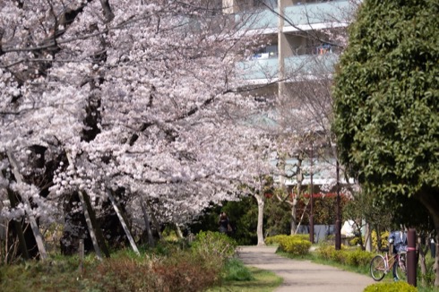 実際、普通は桜並木といっても広角で撮るとこんなだったりする。特にここは数年前に伸びた幹がけっこう伐採されてしまったので並木感が弱すぎる。