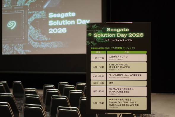 ストレージ製品を手掛ける日本シーゲイトは2月24日、最先端ストレージ技術とパートナーソリューションを紹介する「Seagate Solution Day 2026 AI時代のデータ基盤〜現場が選ぶ大容量ストレージの最適解〜」を開催した。日本シーゲイトとパートナー企業4社によるセミナーの他、パートナー8社のサービスを紹介する展示ブースにも多くの来場者が集まった。