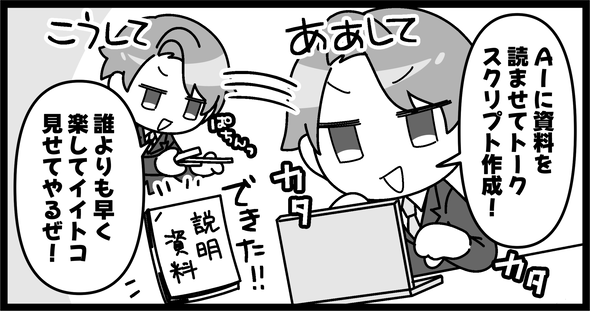 本連載では、とある企業に入社した新入社員「ニイジマ」が、AI活用の“地雷”を踏みまくっていく様子を通して、会社におけるAIの使い方、その初歩を4コマ漫画形式で紹介します(原作:ITmedia NEWS編集部 吉川大貴 画:庶務課)。
