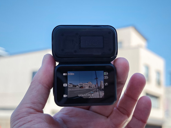 あとは撮影条件によっても変わるだろう。本体が樹脂で覆われているので、無風空間だと熱がこもりやすい。例えば、自転車のように走行中に風が当たる環境では放熱しやすく幾分ましになるとも考えられる。こうした撮影環境や耐久モード、4K24fps、こまめにクリップを分けるスタイルなら十分実用的だが、動作安定化のため継続したアップデートを期待したい。