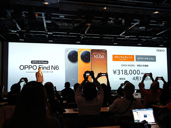 中国OPPOは4月14日、折りたたみスマートフォン「OPPO Find N6」を4月15日から一部の販売チャネルで順次発売すると発表した。OPPOが日本で折りたたみモデルを展開するのは初めて。スウェーデンのカメラメーカーHasselbladとの共同開発で最大約2億画素のカメラシステムを搭載し、厚さ約8.9mmのボディに収めた。