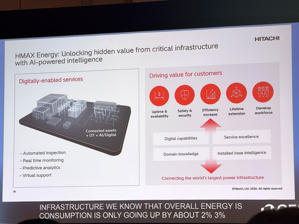 エネルギー領域では、電力網への新規電源接続に伴う検証期間の短縮に取り組んでいる。太陽光・蓄電池・EV充電施設など新しい電源を系統へ接続するには、通常20〜27カ月に及ぶシミュレーションと安全確認が必要だ。NVIDIAの技術と日立のソフトウェアを組み合わせることでこの期間を大幅に短縮できたとしており、クライアント名は明かさなかったが、とある電力会社案件で実際に展開中だとBarirani氏は語った。