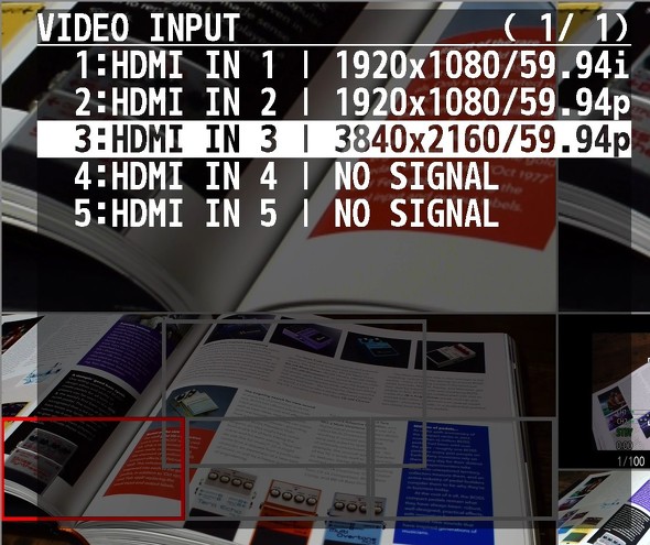 各入力は4:2:2 8ビット、最大3840×2160/60pに対応し、HLG/PQ/SDR、REC.2020/REC.709をサポートする。入力全部にスケーラーを備えており、4KとHDのソース混在も可能だ。