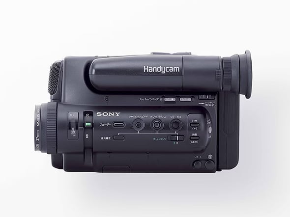 ソニーのハンディカムは、1985年発売の8mmビデオカメラ「CCD-M8」が最初。当時としてはコンパクトなボディと1.0kgという重量で「世界最軽量」をうたった。89年には「パスポートサイズ」の「CCD-TR55」が大ヒットし、カムコーダーにおけるVHS-Cとのシェア争いを大きく左右した。