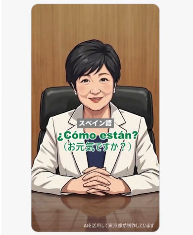 東京都がAIを活用して制作した。いろいろな言語で情報を伝えられるのが特徴で、自己紹介動画では、英語、フランス語、スペイン語、アラビア語のあいさつしている。この他、クールビス促進のショート動画も公開した。