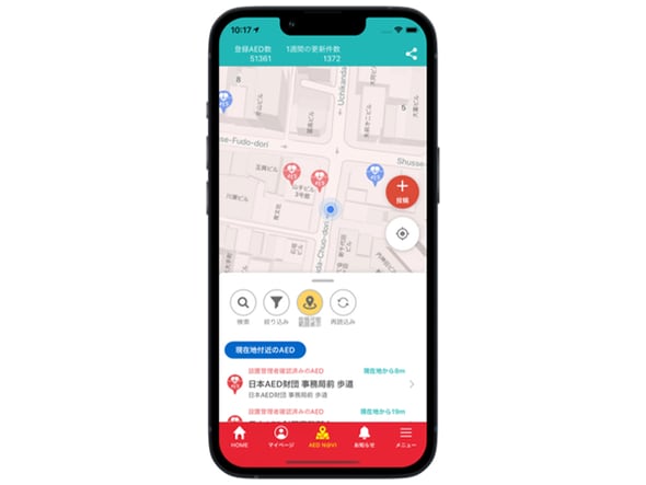厚生労働省の推計によると、国内のAED設置台数は約67万台。しかしナイアンティックは、AEDは設置場所の登録義務がないため、所在が十分に把握されず、活用が進んでいないと指摘する。一方で消防庁のデータによると、心臓突然死で亡くなる方は年間約9万人。心肺蘇生およびAEDの使用によってその救命率は4倍になるという。
