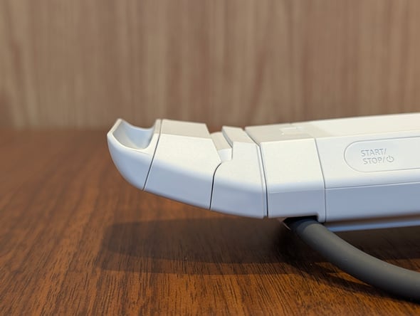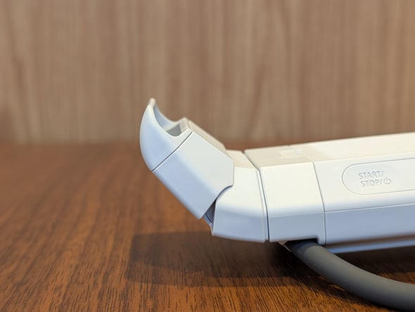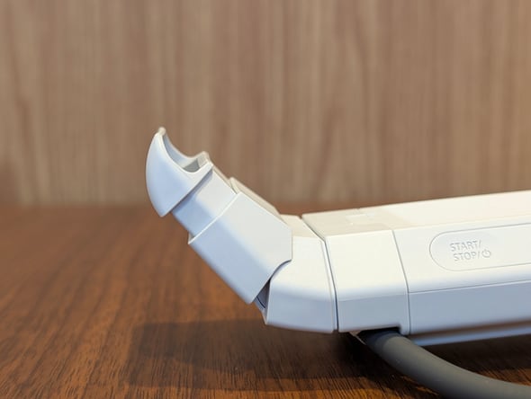 だが今回のダクトは、一段後ろ側に倒せるように改良された。前傾姿勢をとっても、ダクト側を逃がすことができるわけだ。また長さも少し伸ばせるので、後頭部が暑い問題も解決できる。