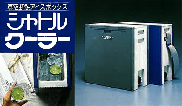真空断熱構造をパネルにする技術もすごいし、当時のコンシューマー向けのクーラーボックスは発泡スチロールなどを断熱材に使ったものが多かっただけに、かなりインパクトがあったと思われる。ただ、重そうではある。そして、当然だが、真空二層構造を円柱状でない形で保つのは難しいので、構造上、隙間ができてしまい、ステンレスボトルのような高い保冷効果は得られない。