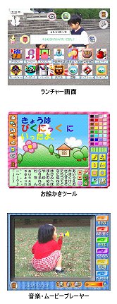 子どもを持つ家族が同じPCを共有して利用できるようにするソフト。PCの電源を入れると最初に起動し,専用ランチャー画面を表示してWindowsデスクトップを隠してしまい,不要な操作ができないようになっている。各ユーザーごとにカスタマイズできるランチャーを設定でき,ワンクリックでアプリケーションを起動できる。特定のフォルダを隠す「フォルダセキュリティ機能」や,ユーザーごとに使用時間を設定できる「タイマー機能」などを備えた。また伝言メール機能やお絵かきツール,音楽・ムービープレーヤーも搭載している。