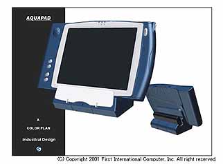 AquaPADは,「Computex Taipei 2001」に台湾FICが出品した製品。Crusoe TM5400/500MHzと128Mバイトメモリを搭載。OSは英語版のMidori Linuxを採用している。ディスプレイは8.4型TFT(800×600ピクセル)で,タッチパネルに対応している。内蔵リチウムイオン準電池で約4時間駆動する。OSは日本語版へのアップデートも予定しているという。サイズは274(横)×164(縦)×26.5(厚さ)ミリ,重さ1.15キロ。