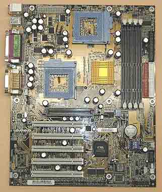 フォームファクタはATX。台湾VIA TechnologiesのApollo Pro 133Tを採用した。CoppermineとTualatinの両方に対応し,CPUをデュアル搭載できる点が特徴だ。シングルCPUモードの場合は1GHz以上のCeleronも搭載可能。DIMMスロット×4(最大2Gバイト),AGP×1スロット,PCI×5スロット。AC97サウンド機能をオンボード搭載する。
