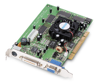 PCIバススロット用。グラフィックチップはGeForce2 MXを搭載,VRAMは32Mバイトを搭載した。NECと富士通の省スペース型PCの一部に採用された30ピンコネクタに対応した出力端子を装備。同コネクタを備えた液晶ディスプレイに接続できる。同コネクタは映像信号と電源,USB,オーディオ信号が1本にまとめられているのが特徴。アナログRGB(D-Sub15ピン)も装備しており,マルチディスプレイの構築も可能だ。対応OSはWindows 98/Me/2000/XP。