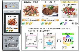 レンジ内臓の自動調理メニュー約150を出来上がり写真つきでディスプレイに表示してくれる。また「シャープスペースタウン」で配信しているレンジ料理メニュー集をSDカードにダウンロードすることで“インターネットクッキング”が行える。