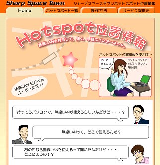 シャープは4月1日,無線LANホットスポットを検索できる「ホットスポット位置情報サービス」を,同社の「シャープスペースタウン」で始めた。