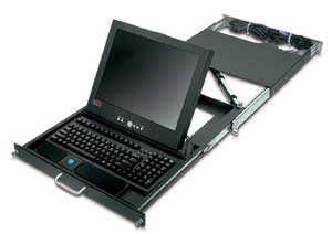 APCジャパンは,1Uラックに収納できる液晶ディスプレイ+キーボード「Rack-Mount LCD Monitor/Keyboard Drawer」を4月25日に発売する。ラック収納型としては業界最薄としている。29万8000円。