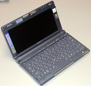 CPUは米TransmetaのCrusoe TM5800/867MHzを採用,メモリは256Mバイト(最大384Mバイト)。液晶ディスプレイは1280×600ピクセル表示の「ウルトラワイドTFT」。従来通り,ディスプレイ上部には35万画素CCDカメラ「MOTION EYE」を搭載した。Bluetooth通信機能を内蔵するほか,IEEE 802.11b準拠の無線LANカードが付属する。OSはWindows XP Home Edition。