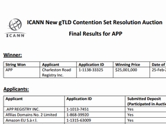 Googleが、ICANNのドメインオークション史上最高額の2500万1000ドルでgTLD「.app」を落札した。アプリストア「Google Play」で使うのかもしれない。
