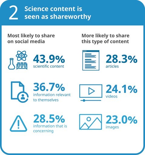 そうした洞察の一つが専門家による科学的な情報に対する態度なのだが、同報告書によれば、科学的コンテンツは「シェアする価値がある」と見なされているとのことだ