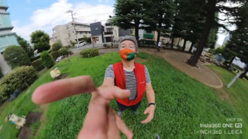 これ、360度映像ならではの面白さが詰まっていると思う。実際にはカメラは斜めでくるーっと回転しながら投げられてるんだけど(あれを回転させずに投げるには修行が必要だ)、ちゃんと投げた人をトラッキングしてるし、頂点でぐるっと周辺を見渡してるように見える。