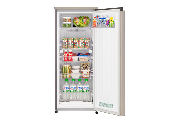 日立の「スマートストッカー R-KC11R」(実勢価格7万9250円)。冷蔵、チルド、冷凍の切り替えに対応。2段目と5段目に重量センサーを搭載。「Amazonスマートオーダー」に対応することで自動注文を実現している