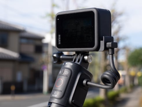 そして、Bluetoothでペアリングしてワイヤレスリモコンとして使えるようにすると、あとはグリップを握り、自在に録画したりとめたりができるわけだ。