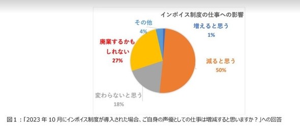 声優業界への影響も甚大だ。VOICTIONのアンケートによると、インボイス制度による負担増で、廃業を検討している人声優は27%と4人に1人以上に上る。