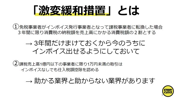 反対論を意識した政府は、納税額を売上税額の2割に軽減する措置(2割特例)を3年間限定で導入するなどの発表した。