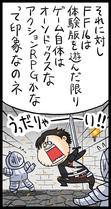 連載 2023年6月18日 前評判を覆し「FF16」の期待値を跳ね上げた体験版の“とんでもない中身” マンガ家も体験:サダタローのゆるっとマンガ劇場(3/6 ページ) 「FINAL FANTASY XVI」発売に先駆けて配信された体験版。評価がいまひとつだった前作から一転、王道アクションRPGになっていました。しかも没入感がハンパではありません。 [サダタロー,ITmedia] PC用表示 関連情報 Share Tweet LINE Hatena 前のページへ | 次のページへ バトルやイベントもスタイリッシュ Copyright © ITmedia, Inc. All Rights Reserved. 前のページへ | 次のページへ