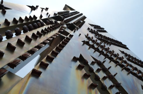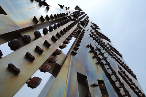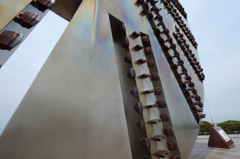 そんな都合の良いもの、そうそうないのですが、今回撮影してきたのが、「海ほたる」の建設記念碑として鎮座している巨大モニュメント「カッターフェイス」です。24mmも別に悪くはないのですが、14mmだとやはり全体が楽に入りますし、近いところの迫力はさらに増します。