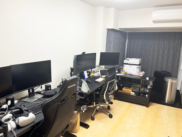 リモートワークになってから数年間、自宅に設置した120cm幅の仕事机(仮)で一日中開発を続けていたのですが、首と肩がやられ限界を感じていました。「もう限界だ!」と感じたそのタイミングで、偶然空いた隣室を管理会社に直電し、交渉の末に勝ち取りました。