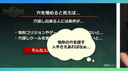 任天堂の看板タイトル「ゼルダの伝説」シリーズ最新作「ティアーズ オブ ザ キングダム」。2023年5月の発売以来、世界中のゲーマーを魅了し続けているが、その中にある革新的な機能「トーレルーフ」の開発秘話が「CEDEC2024」で明らかになった。