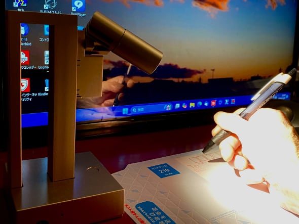 実際の使い方としては、普段は有線で電源につないで使って、一時的に別の場所で使いたいとか、停電時などにはバッテリーで使用するというのが、このライトに一番合う使い方ということになる。私は、普段は、ペンスタンドの上に乗せた1灯タイプをデスクライトとして使いながら、机の上で写真を撮りたい時は電源コードを外して、ライティング機器として使ったり、細かい文字を書く時に、手元に持ってきたりといった形で運用している。こういう使い方なら、バッテリーは1時間半もてば十分。