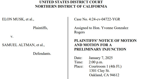 イーロン・マスク氏や同氏のxAIは、サム・アルトマン氏、OpenAI、Microsoftなどを提訴した。OpenAIの行為の差止命令を求めており、被告の行為が継続した場合、「回復不能な損害」を被ると主張する。