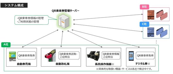 磁気切符は自動改札機のメンテナンスも切符そのものの処分コストもかかる点で会社の負担が大きく、QRコードをベースとした切符に移行していこうというものだ。QRコード切符の仕組みについては前述の通りだが、複数の会社をまたいでの運用では「特定のユニークIDの移動情報を、全ての“連絡する”会社の間で共有しなければならない」という問題がある。