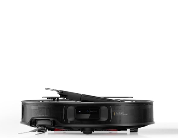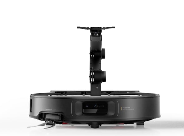 Roborock(ロボロック)が出品した「Saros X70」は、「OmniGrip(オムニグリップ)」と呼ばれる折りたたみ式の5軸メカニカルアームを備えた、量産品としては初めてのロボット掃除機だ。アームの先端には2本の指があり、約300gまでの物を持ち上げ、そのまま移動できる。