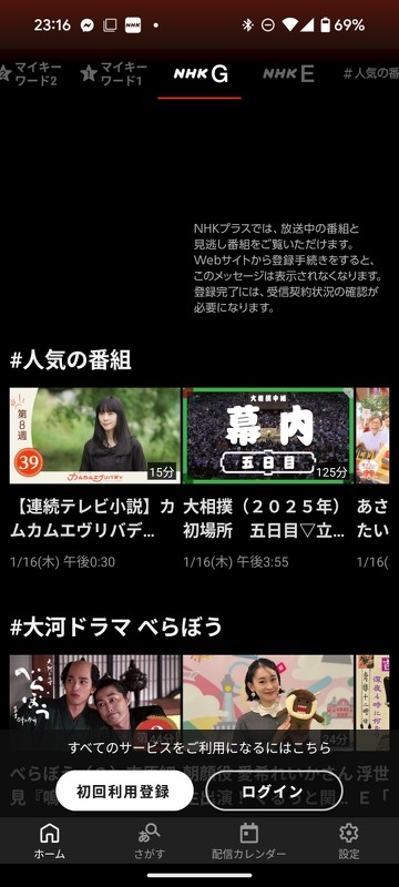 スマホの放送サービスである「NHKプラス」は、通常であればログインしないと画面上に大きくWebサイトから登録手続きを促すメッセージが出て、ライブ映像の1/4程度が見られないようになっている。だが緊急放送時には、ログインしなくてもメッセージなしで番組が確認できた。この措置には納得感がある。