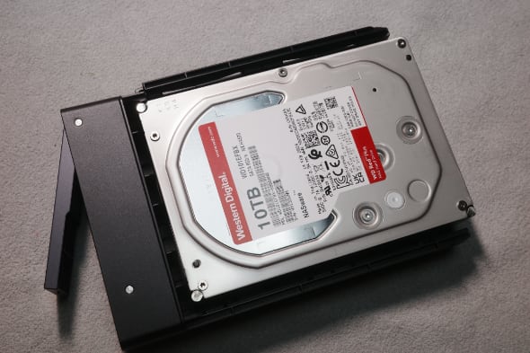 各ベイへのHDDの取り付けはネジなしで可能になっており、今時のNASの設置はこんなに簡単なのかと驚きました。もちろんHDDの設定やメンテナンスのために必要な情報をアプリから確認、設定可能です。
