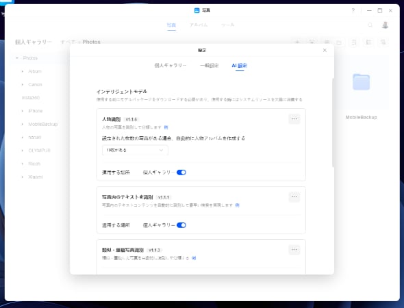 ところが、このNASyncには写真アプリがあり、そこでGPS情報、写真分析、顔での分類といったフォトクラウドで提供されているような機能はひととおり揃っています。