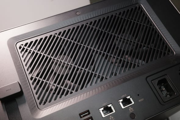 お借りしたNASync、ネットワークの都合もあり、机の下に設置してみましたが、動作音などが気になることもなく、とても安定して稼働しています。ほこりを防ぐフィルターの搭載など、長期使用とメンテナンスを考慮した設計になっています。