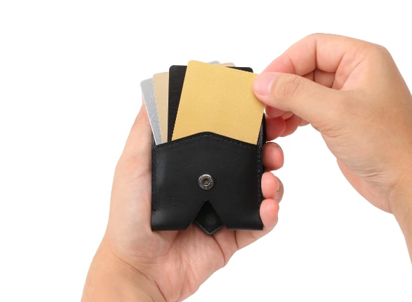 「カードをケースの中で扇状に開くというアイデアは、最初はなかったんです。いろいろと検証していった結果、この形になりました。私は、商品を作る際に、他社の商品も含め、様々な商品の内容物や指の”動き”を観察します。今回の場合は、スタッフや関係者の他社製カードケースを見せてもらい、それを出したり、入れたりする際の動画を撮らせていただいて、繰り返し、どういう指の動きで、カードを取り出しているかを観察しました。カードを重ねて収納するタイプのカードケースでは、2枚目以降のカードを見て取り出す際に、必ずカードをスライドする動作が入ります。色々なスライドのパターンを検証した結果、トランプでババ抜きをする時や、銀行員がお札を広げるように、扇形に開く方法が、スライドが簡単で、見やすく、カードも取り出しやすいことに気づきました」と南さん。